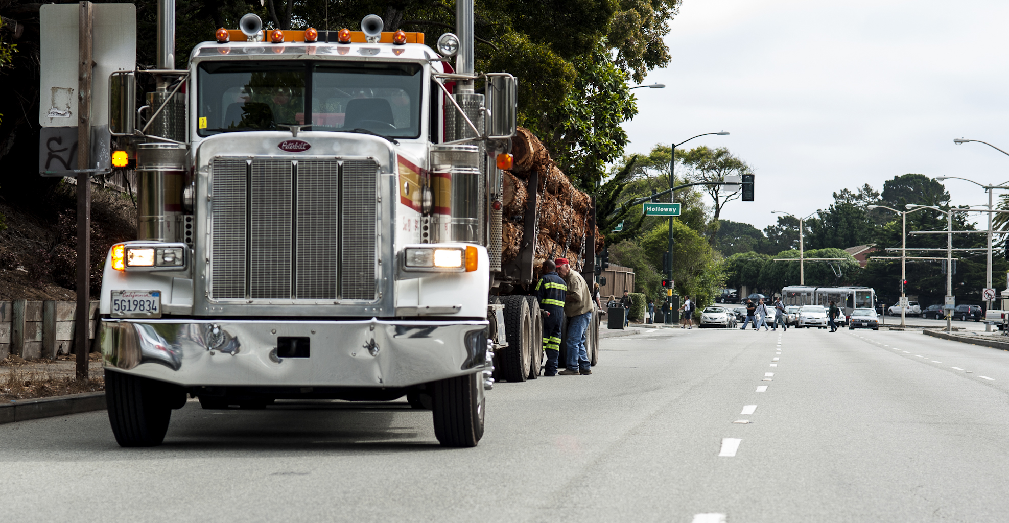 Tony David and Percy Leighton preparing to tow Leightons truck after it broke down on 19th Avenue, San Francisco, CA. Making it impossible for him to drop off his load of lumber in Concord, CA on Wednesday, September 11, 2013