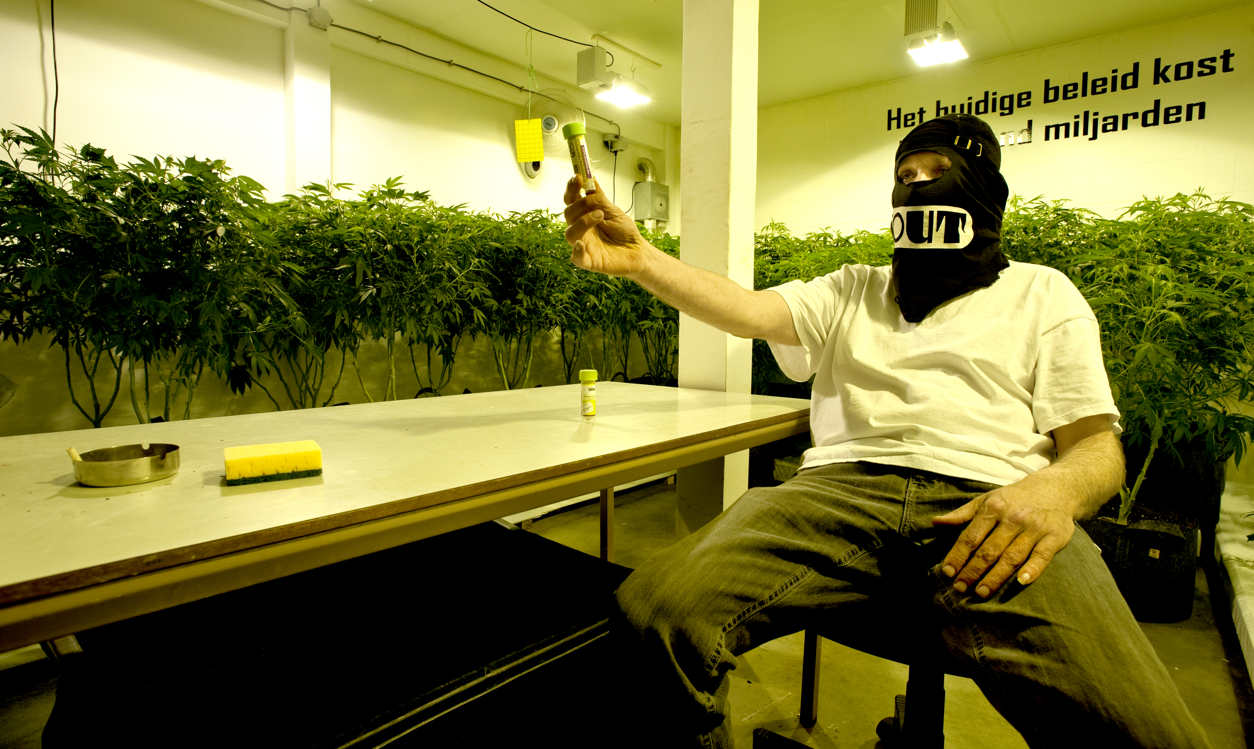 A group of idealistic cannabis growers in Friesland, The Netherlands tried to find a way to legalize the growing of canabis. In order to show the Dutch gorvernment how this could be achieved, they set up a foundation. Started growing canabis in a professionally set up grow room. Including book keeping and purpose built vantilation. The operation was illegal, but intended to show how how a legalized operation could be run. Because of the illegality, reporters were brought into the grow room in a van with the windows blacked out, so they couldn’t see out. They were only let out of the van after it had been driven into the warehouse. Telphones were not allowed in. In June 2013 the grow room was shut down by police.