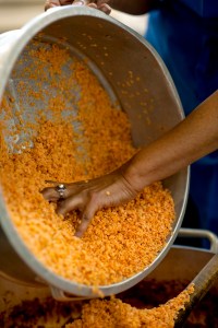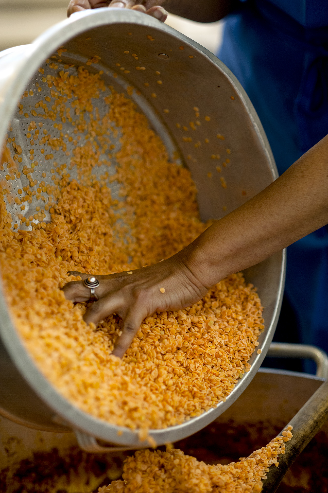 Eji Atlaw adds the lentils to het spicy lentil dish at La Cocina on 2948 Folsom Street in San Francisco.